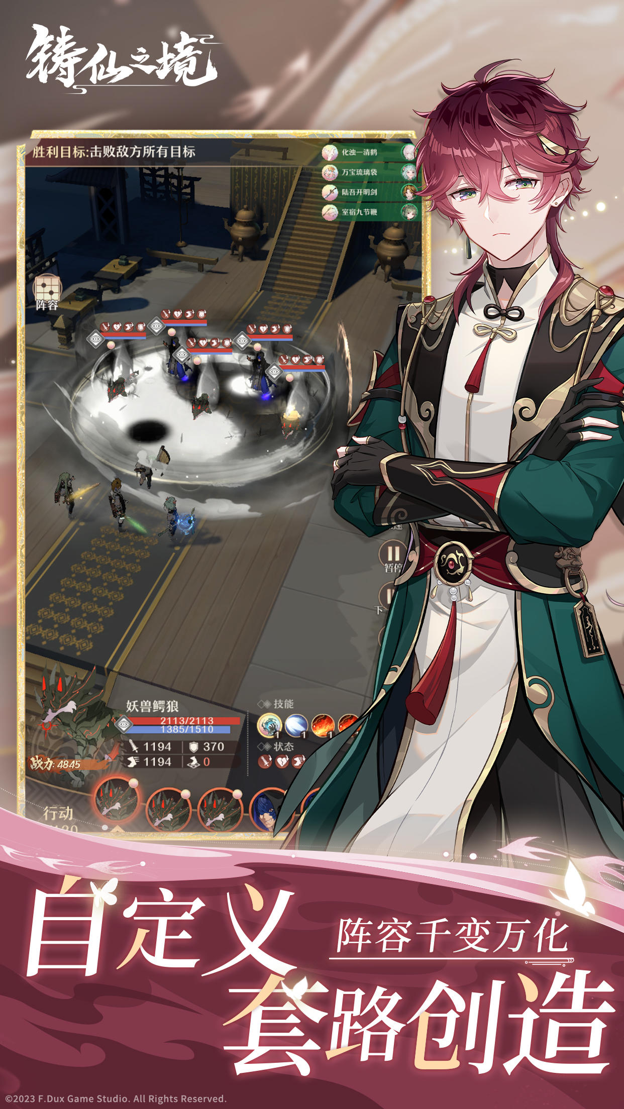 游戏的核心玩法铸仙炉是一种类肉鸽式培养系统,每个弟子都要通过铸仙炉的仙境来提升实力。玩家需要为弟子选择职业(符咒、御剑、丹鼎)和属性(风、火、雷、水、土),搭配不同的执念卡进行修炼。修炼过程中会遇到随机事件、奇遇和心魔挑战,每次选择都会影响弟子最终的成长方向。弟子培养完成后将成为仙魂,可以组队参与自动推演的战棋战斗,所有战斗都可跳过,极速验证阵容养成结果。游戏还包含学宫建设、竞技场、爬塔等丰富玩法,主线剧情贯穿始终,讲述五界纷争的宏大故事。