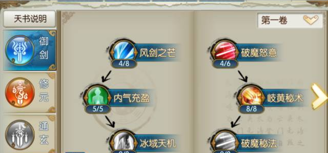 天书方面推荐主御剑副修元,御剑系的天雷灌注、飞剑御空、华闪之歌这些都能大幅提升神剑和七劫的伤害。修元系的气贯长虹、雷云奇变加强唤雷和真元护体效果,让咱们的输出和生存更均衡。通玄系虽然全面但不够专精,神剑流不太推荐。天书加点优先点满第五卷的关键技能,比如御剑的炼神还虚和修元的真元圣护,细节上可以根据个人喜好微调。