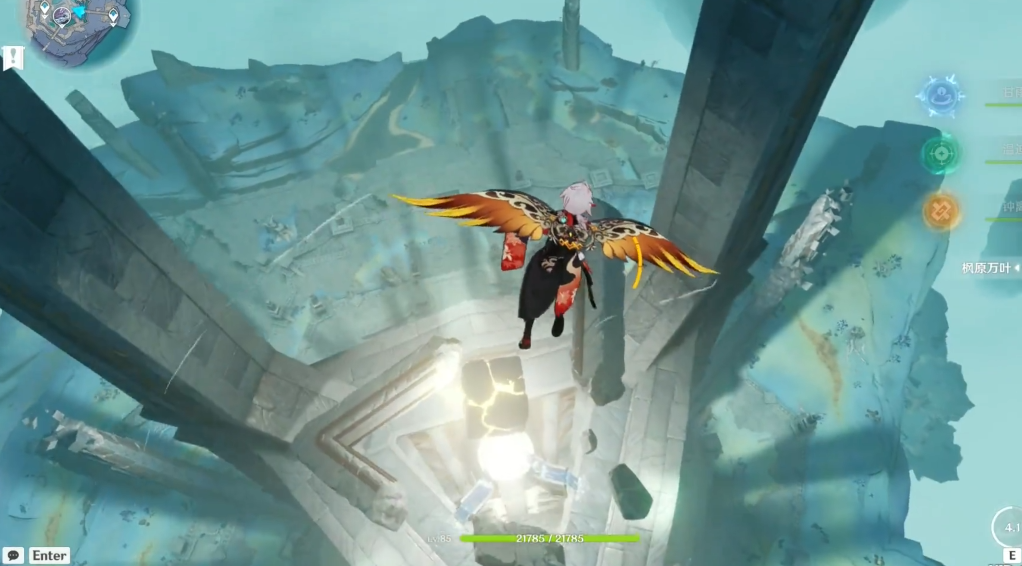 进入渊下宫后,探索过程中会遇到各种机关和谜题。塔顶的攀登需要利用地形和角色技能,比如万叶的长按E技能可以辅助跳跃到高处。从大日御舆的传送点出发,找到附近的密室并靠近传送装置,可以直接传送到大日御舆顶端。如果选择手动攀爬,需要注意墙边的柱子和碎石,部分碎石可以攀爬,但上层的碎石可能需要借助技能跳跃。
