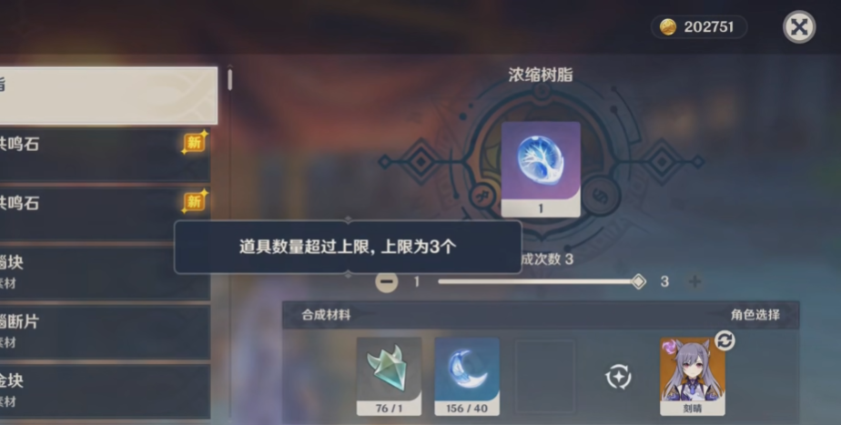 浓缩树脂有携带上限,最多只能存3个。如果背包满了就没办法继续合成,所以建议合理安排使用节奏。平时体力快溢出时可以先做成浓缩树脂存着,等需要刷材料再集中消耗。浓缩树脂不能用于周本或世界BOSS,只能在地脉和秘境中使用哦。