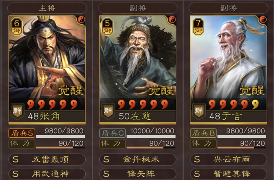 左慈的战法搭配思路以增强团队防御和续航为核心。在A级战法选择上,八门金锁阵是泛用性极高的首选,其提供的减伤效果能与左慈的规避形成双重保护;御敌屏障能进一步强化队伍前期的整体抗伤能力;坐守孤城则提供稳定的即时治疗,弥补左慈自带战法治疗启动前的空窗期;挫锐施加的虚弱状态能有效限制敌方单体输出,为己方争取更多时间。若资源允许,高级战法如暂避其锋与刮骨疗毒是他的经典组合,前者针对性地保护队伍中的最高属性武将,后者能精准急救并清除负面状态,共同构建起坚固的防御体系。需左慈的传承战法是杯蛇鬼车,在拆解他之前务必确保留有本体,因为其独特的治疗和规避能力在很多时候是不可替代的。