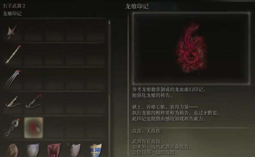 武器与装备的选择深刻影响着该流派的实战表现。在武器方面,双持攻速快、攻击段数多的曲剑或太刀类武器是理想选择,因为它们能高效触发出血效果。为武器施加神秘质变可以充分利用高感应属性对物理面板的补正,获得不俗的直伤;搭配切腹战灰能主动大幅提升出血累积值,是爆发输出的关键。触媒首选龙飨印记,它在强化后拥有极高的感应补正,能让你在感应属性上的投资高效转化为祷告伤害,无论是释放龙息还是其他攻击性祷告都有出色表现。护符搭配应兼顾生存与输出,例如龙徽大盾护符能显著提升物理减伤率,黄金树的恩惠能全面增强角色属性,鲜血君王的欢愉则能在触发出血后提升攻击力,形成伤害循环。