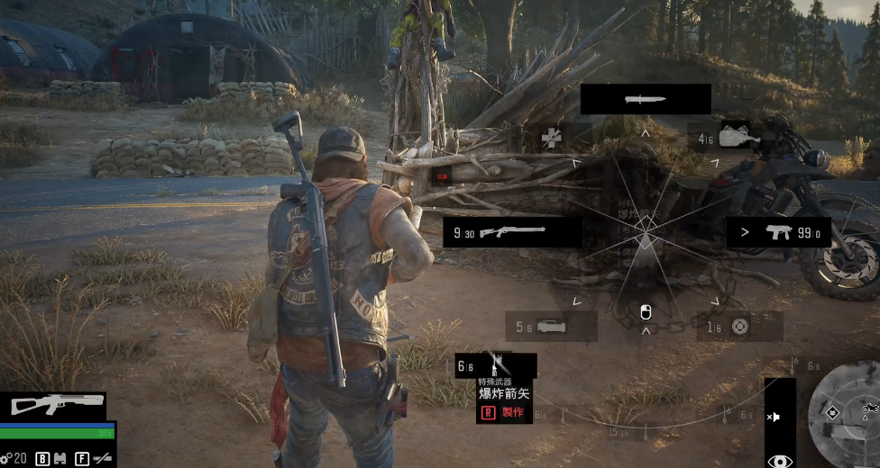 成功制作十字弓后,其本身不附带弹药,玩家需要单独制作箭矢。制作所有箭矢的基础前提是解锁技能树生存分支下的弓术基础技能。制作普通箭矢需要最基础的三样材料:1份木材、1片羽毛和1个金属碎片。木材可通过砍伐路边的树木或拾取枯枝获得,是游戏中最易获取的资源之一;羽毛则需要通过狩猎鸟类获取,在开阔的草原、湖边区域较为常见;金属碎片则来源于拆解废弃车辆零件、易拉罐或敌人掉落的弹壳等处。收集齐材料后,在非战斗状态下,通过按住L1键调出物品轮盘,选中弓箭图标即可查看材料并点击制作,长按制作键还能进行批量合成,极大提升效率。