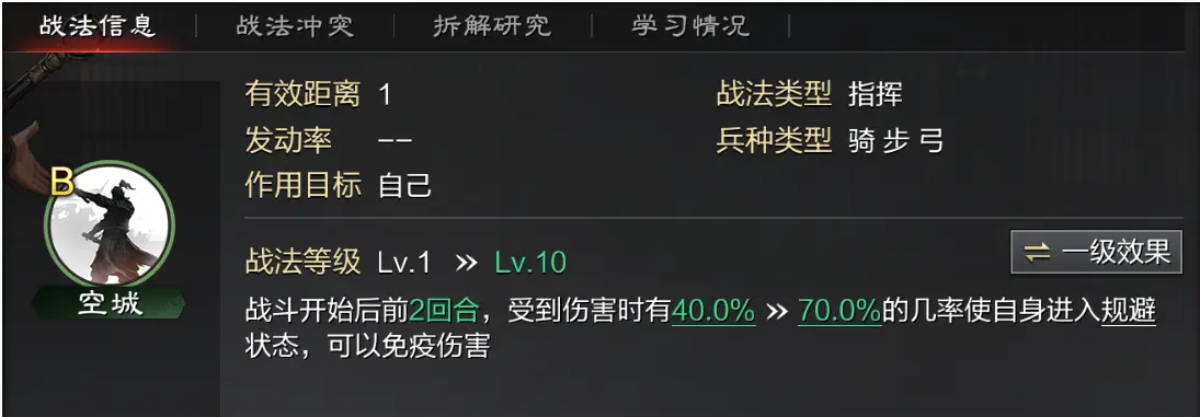 擅兵不寡的最大优势在于其稳定的恢复能力,不仅每回合固定回复兵力,还有几率获得额外治疗。这种特性让它成为前锋武将的保命神技,特别适合那些需要扛住敌方火力的肉盾型角色。由于恢复的是死兵而非伤兵,实际战损会明显降低。相比之下,空城的核心价值在于前期的规避效果,能有效应对菜刀队或爆发型队伍的突击。如果配合低速武将使用,甚至能通过机制延长至三回合覆盖,大幅提升生存能力。