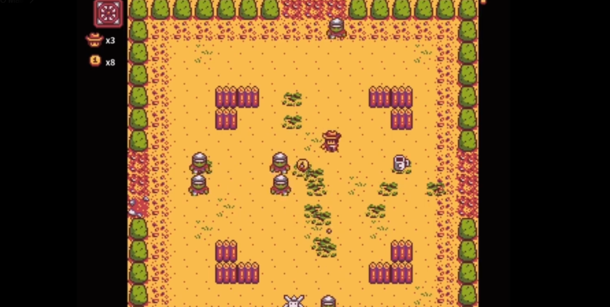 关卡分为三大关,每关的敌人速度和血量会递增。第一大关适合蹲角落无伤过,但从第二大关开始会出现飞行怪,必须靠走位和提前升级弹药。建议在第二关前买1级弹药,第三关前买2级弹药,否则后期会因伤害不足陷入被动。BOSS战相对简单,牛仔BOSS会释放八方向子弹,躲在掩体后斜射即可,注意他召唤的小怪优先清理。