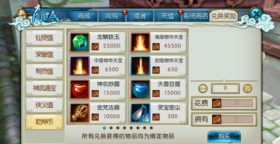 乾坤商店里能兑换的物品那可是相当丰富,算是游戏里一个把闲置资源转化为核心资源的重要渠道。这里面最值得你关注,也是很多玩家优先兑换的目标,就是龙鳞铁玉了,这个东西对于装备的灌注提升成功率有巨大帮助,尤其是在你灌注等级高了以后,失败一次损失可不小,有个铁玉保底就安心多了。除了铁玉,商店里还长期供应各种灌注符、炼器符、完璧符、吉星符这些强化必备的消耗品,你不用再完全依赖运气去副本里刷或者高价从别的玩家手里买了。一些高级法宝的碎片比如嗜血珠碎片、摄魂碎片,还有宠物技能玉、九转幻魂丹这些培养宠物和角色的珍贵材料,也都能在这里用乾坤币换到,可以说覆盖了你角色成长的很多个方面。