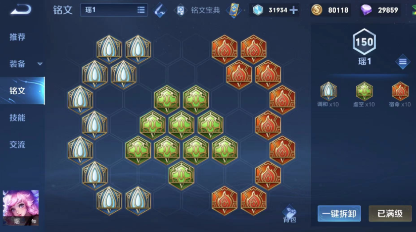 瑶应选择宿命、调和和虚空组合,以最大化生命值、每5秒回血和移动速度,同时虚空铭文提供的冷却缩减结合装备可达到40%上限。技能加点方面主升一技能若有人兮以加强控制频率和视野获取,副升二技能风飒木萧补充范围伤害,大招自然之翼优先升级以增强护盾值。召唤师技能首选治疗术,能在关键时刻为团队提供额外生存保障,或选择闪现提高自身机动性。