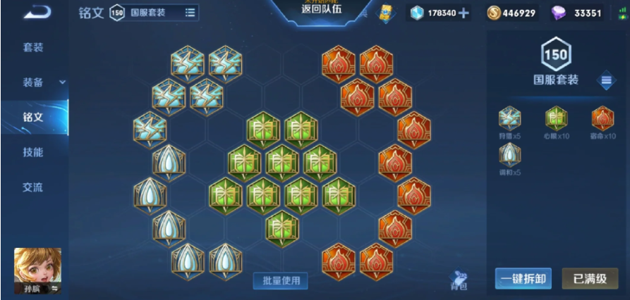 铭文搭配采用10宿命、10虚空和10调组合,提供高额生命值、冷却缩减和移速加成,强化孙膑的坦度和游走效率。技能加点推荐主升二技能时之波动,因为升级会增加移速加成和冷却缩减效果,对团队收益更大,副升一技能时空爆弹用于消耗和控制,大招时光流逝在有机会时点满以扩大控场范围。召唤师技能可选择治疗术或弱化,前者配合二技能形成双重回复,后者能有效克制突进英雄,提升团战容错率。