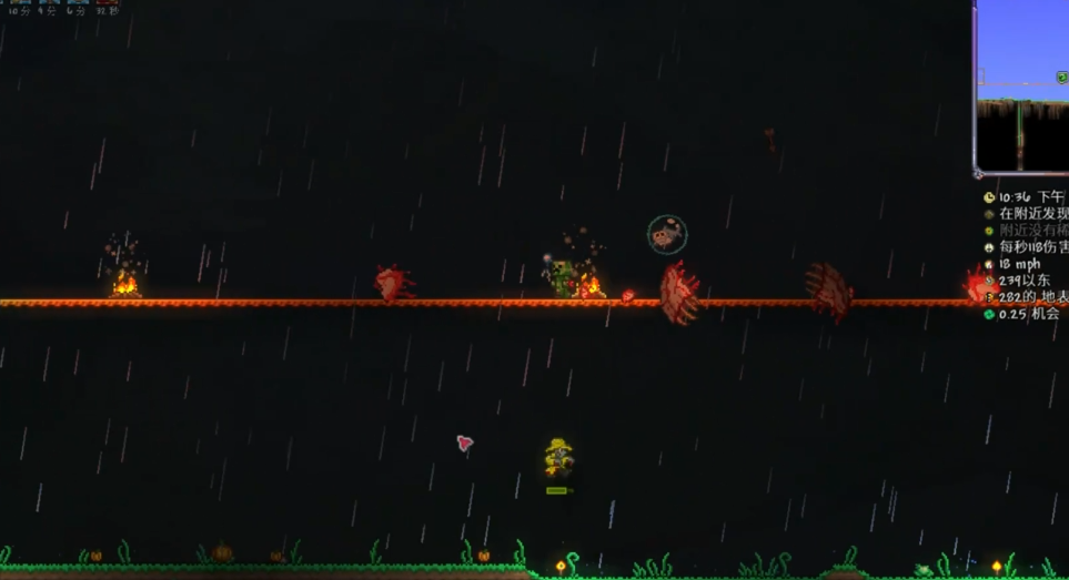 战斗场地准备至关重要,推荐搭建长度约2个屏幕的双层平台,层间距6-7格。平台上放置篝火和心形灯笼可提升生命恢复速度。武器选择方面,远程武器如迷你鲨配合银弹或流星弹较为有效,弓类武器搭配燃烧箭也能造成持续伤害。近战武器建议使用长矛类或能发射剑气的武器,避免使用攻击距离过短的剑类。配饰方面,赫尔墨斯靴提升机动性,再生项链增加生命恢复,金属扣带提供额外防御。