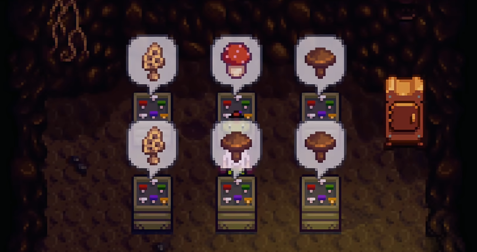 果蝠选项会使山洞定期生成随机季节的水果,这些水果可以无限保存且不受季节限制,对于完成社区中心献祭任务或送礼有较大帮助。蘑菇选项则每天生成固定数量的蘑菇,包括普通蘑菇、羊肚菌等种类,适合用于制作生命药水或直接食用恢复体力。两种选择各有利弊,需根据个人游戏策略慎重决定。