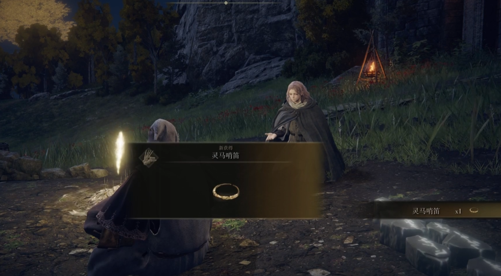 梅琳娜的出现机制与赐福点激活直接相关。她不会在野外随机出现,而是固定在几个关键剧情节点的赐福处现身。初次见面时,她会主动提出交易条件,承诺提供升级服务并赠送灵马哨笛,条件是玩家必须将她带到黄金树脚下。这段对话结束后,玩家将永久获得召唤坐骑托雷特的能力,灵马哨笛会自动加入随身包包或装备栏,通过特定按键组合即可召唤。若玩家刻意避开这个赐福点,梅琳娜也会在其他赐福点强制出现,但关卡前废墟仍是设计上的首选触发位置。